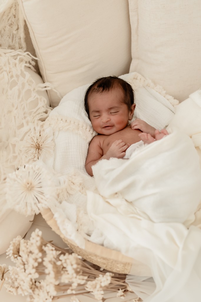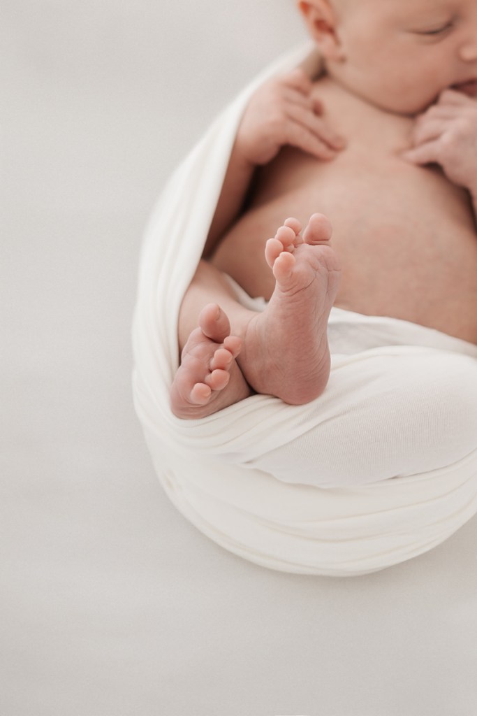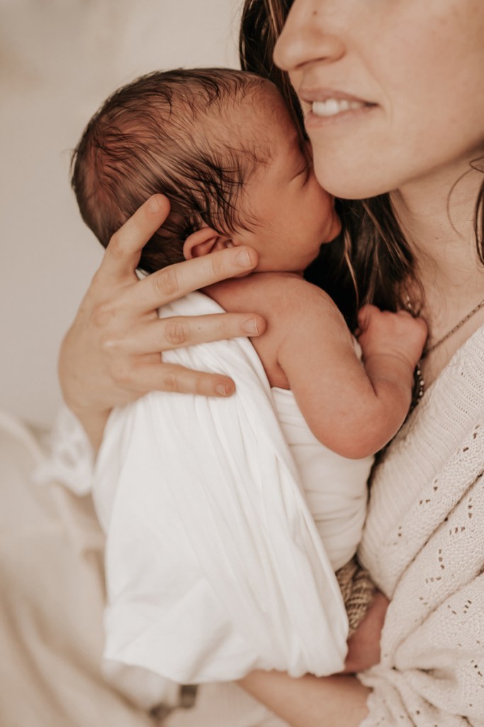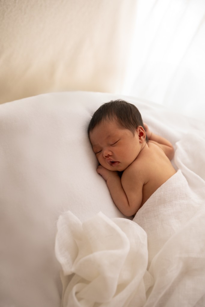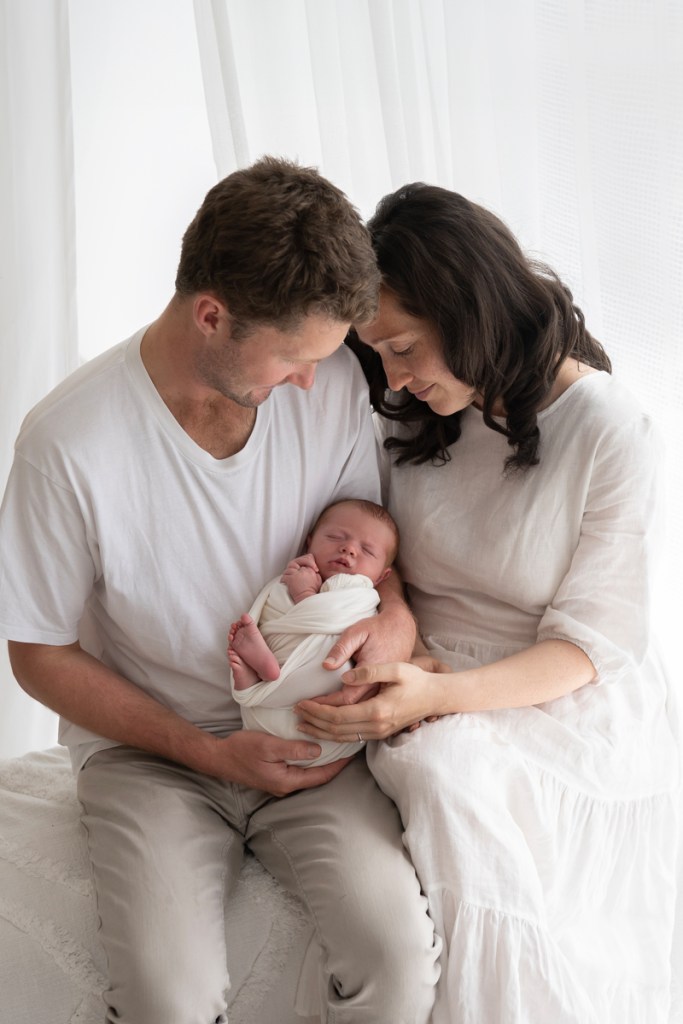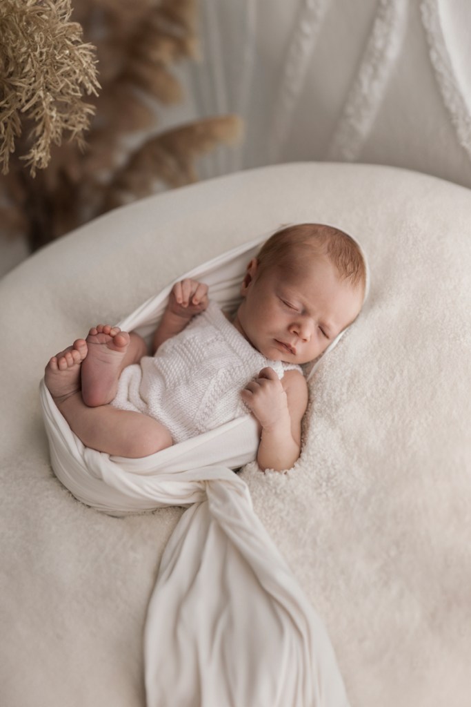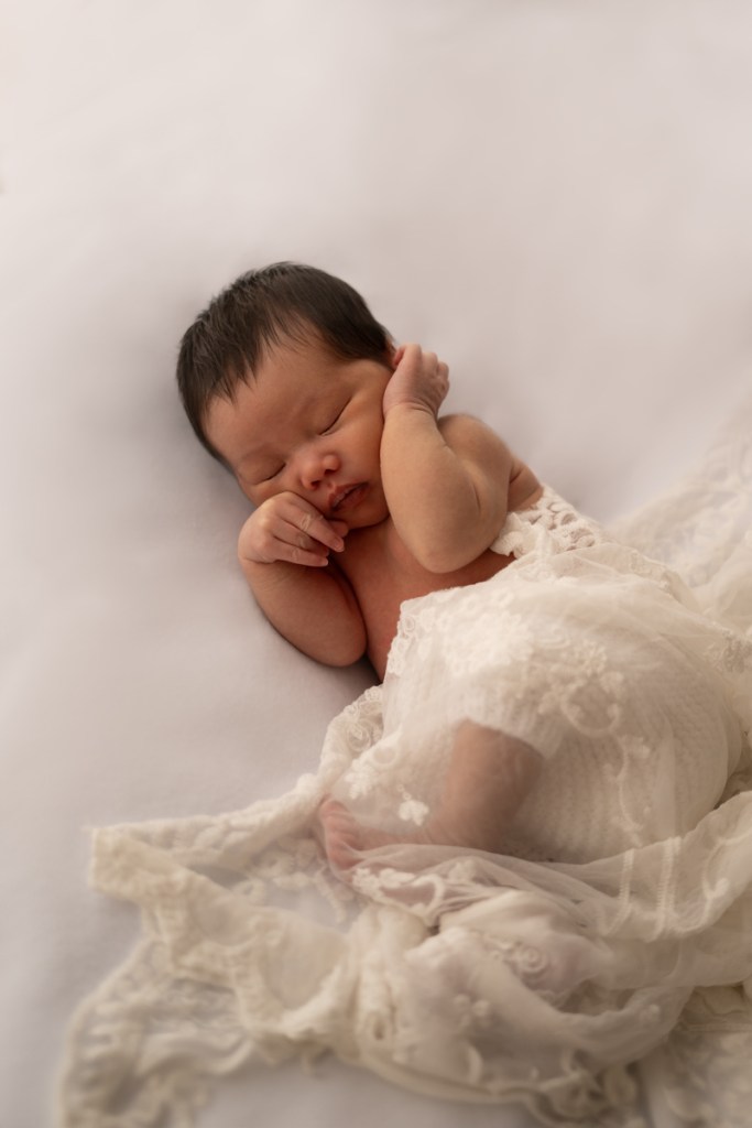 Modern and naturally styled photos of baby wrapped and posed in studio. These are done in a lightly posed style that looks natural. Natural fabrics are used to enhance photos, including 100% Linen, Cotton, Wools, natural florals and earthy pieces are the only props that will be included if requested. Newborn outfits and women’s wardrobe inclusive. Parent and Sibling photos with baby included.