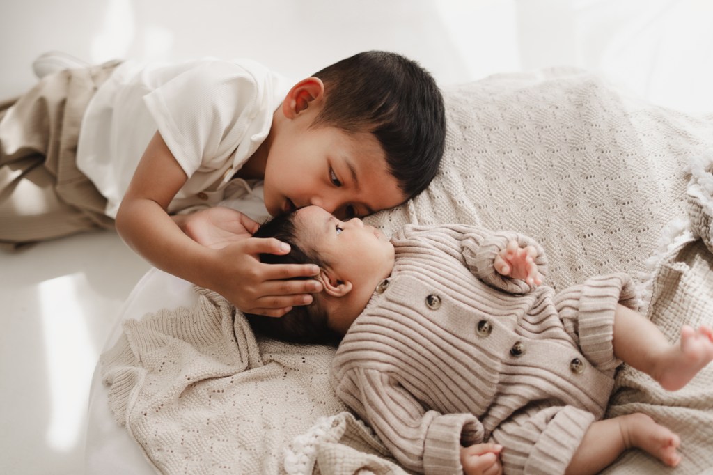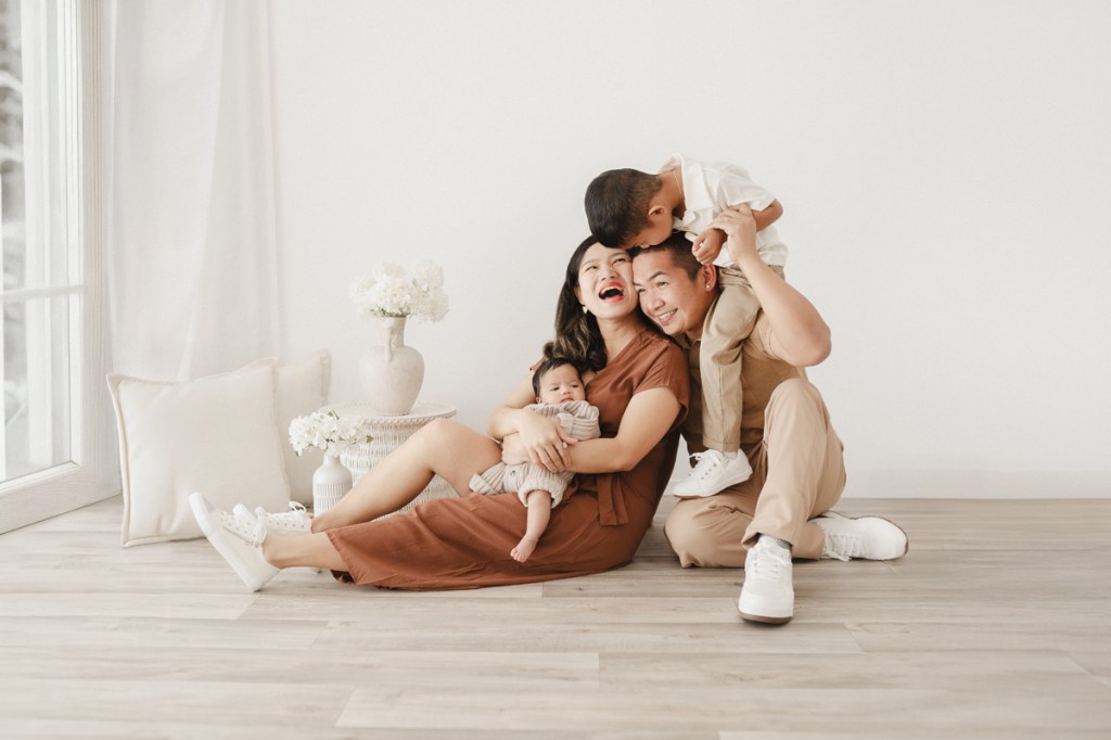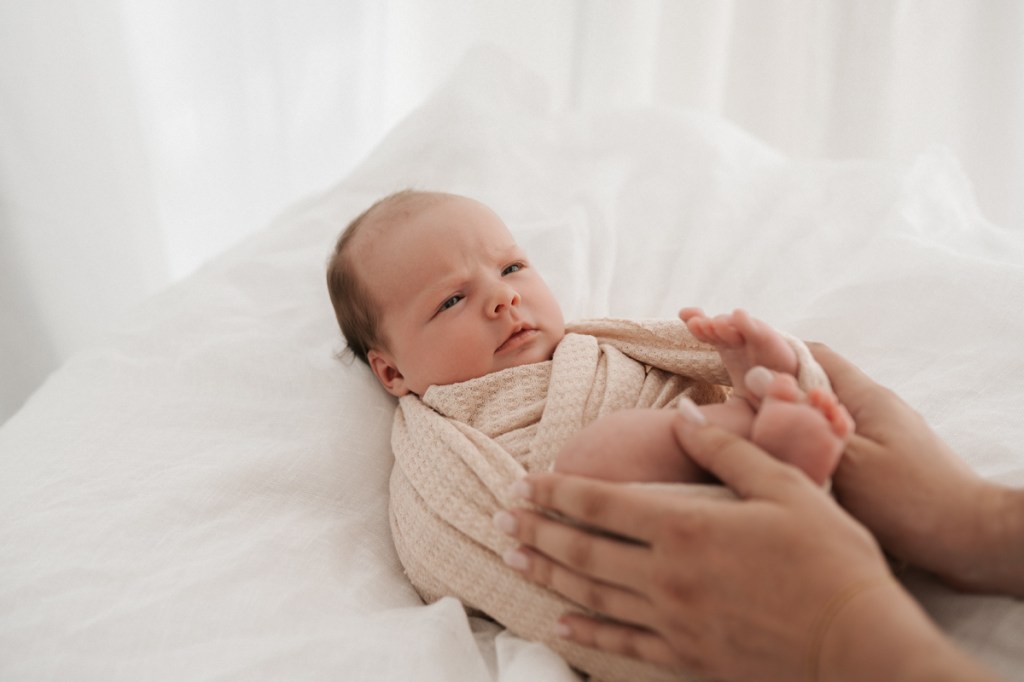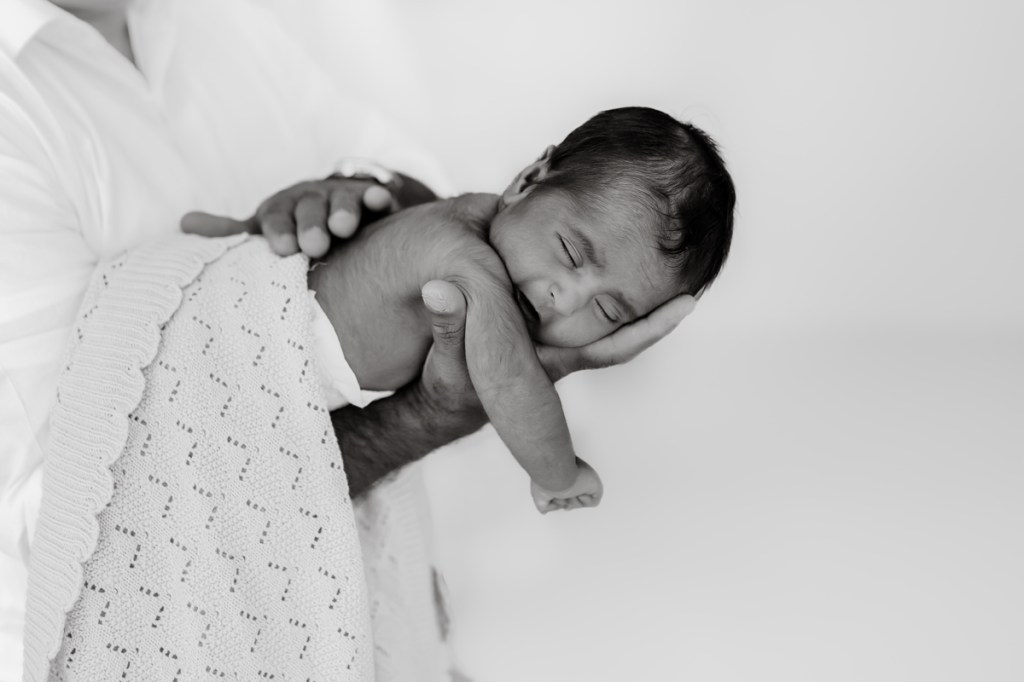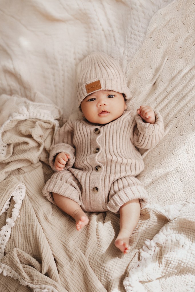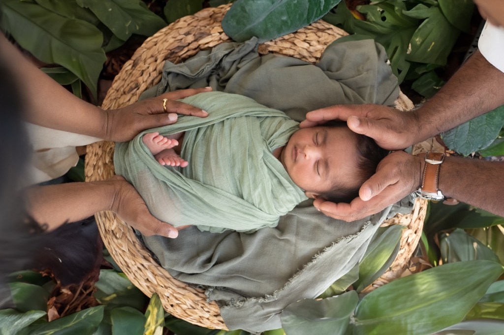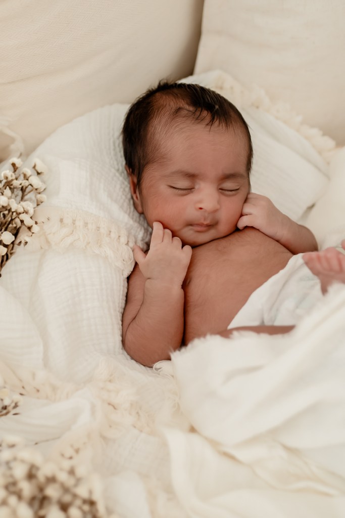 Modern and naturally styled photos of baby wrapped and posed in studio. These are done in a lightly posed style that looks natural. Natural fabrics are used to enhance photos, including 100% Linen, Cotton, Wools, natural florals and earthy pieces are the only props that will be included if requested. Newborn outfits and women’s wardrobe inclusive. Parent and Sibling photos with baby included.